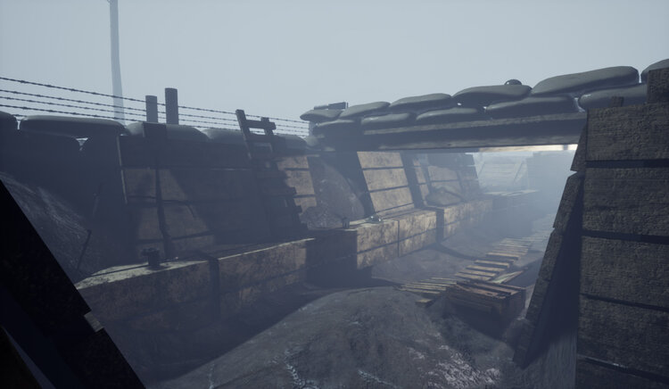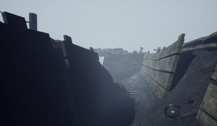 A small scene in Unreal set in a First World war trench.